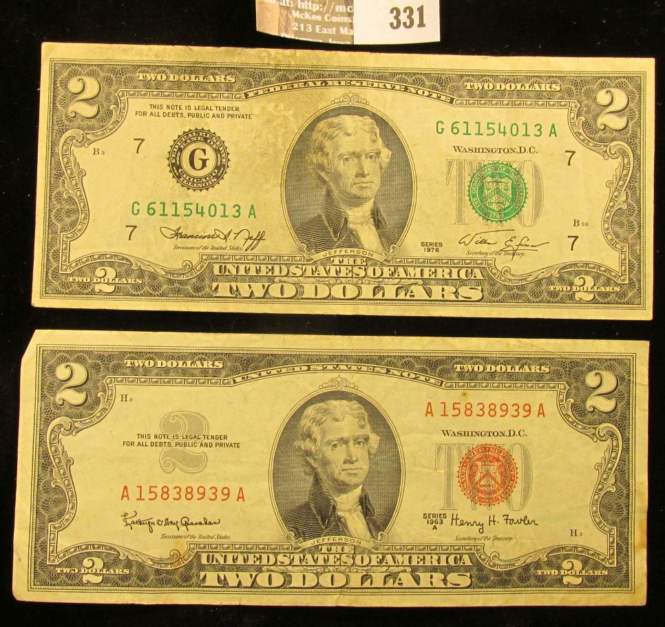 Series 1963A $2 U.S. Note "Red Seal" & Series 1976 $2 Federal Reserve Note.