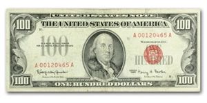 Series 1966 $100 U. S. Note - Very Fine **|**|** Year: 1966 ; Mint Mark: Very Fine ; Grade: N/A ; Denomination: 100 ; MSRP: $300