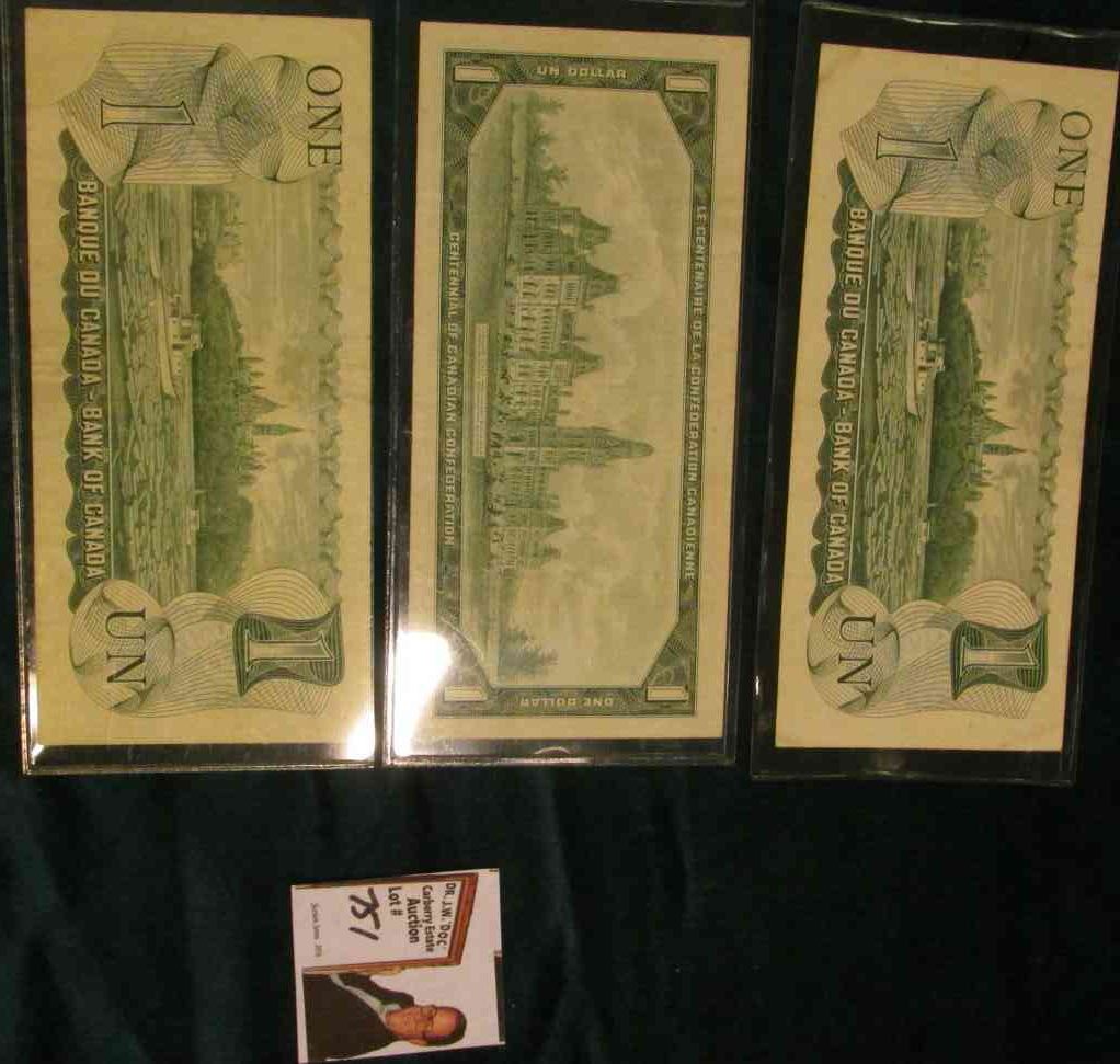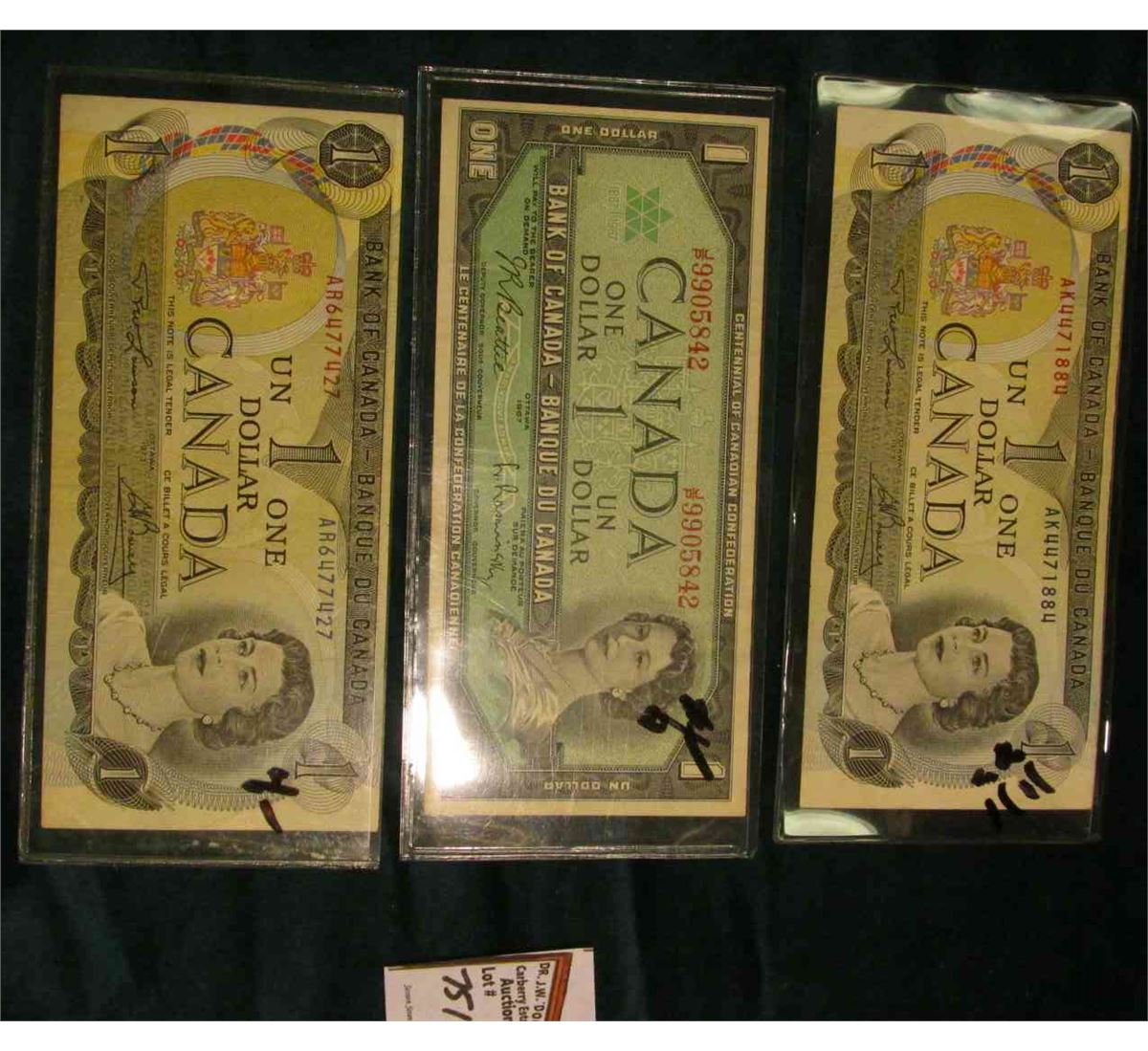 Series 1973 Bank of Canada One Dollar Note, VF; Series of 1967 Bank of Canada One Dollar Note, VF; & 1973 Bank of Canada One Dollar Note, VF;