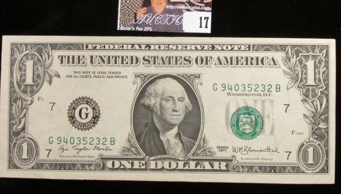 Series 1977 U.S. One Dollar Federal Reserve Note. Nearly CU.