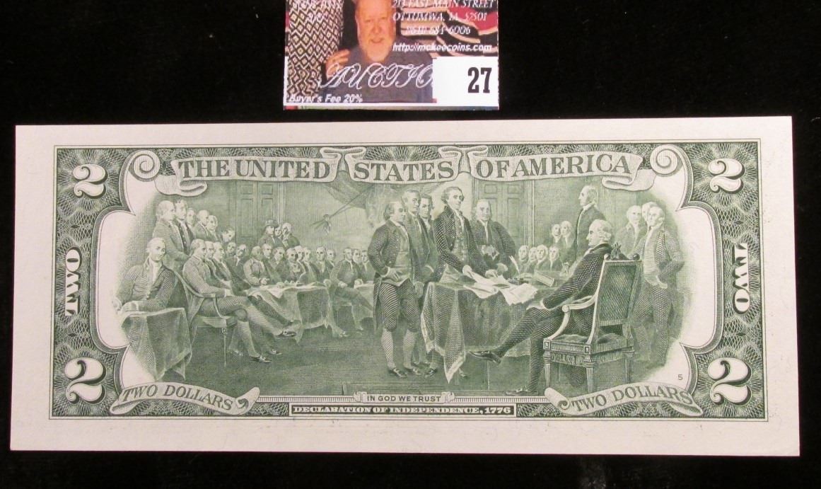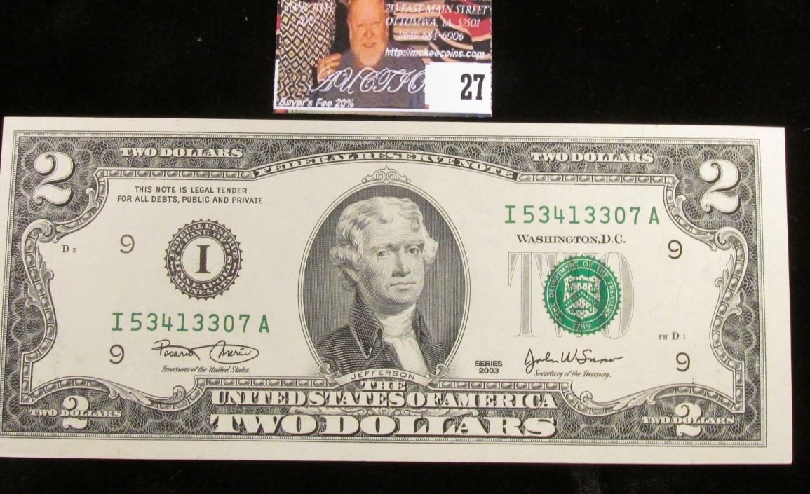 Series 2003 Two Dollar Federal Reserve Note. Nearly CU.