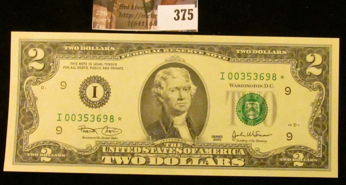 Series 2003 Two-Dollar Federal Reserve Star Note. Crisp Uncirculated.