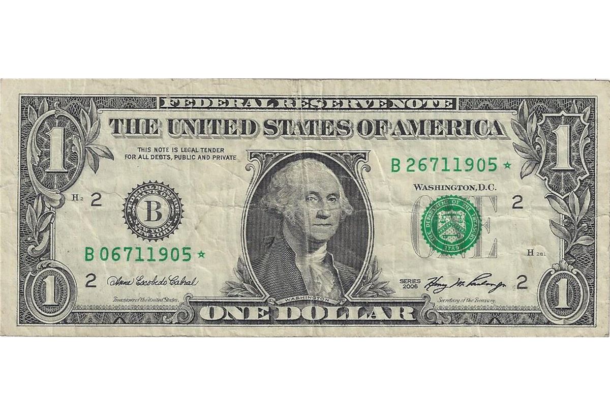 One Series 2006 $1 Star Federal Reserve Note 06/26 Mismatched Serial #'s Error.
