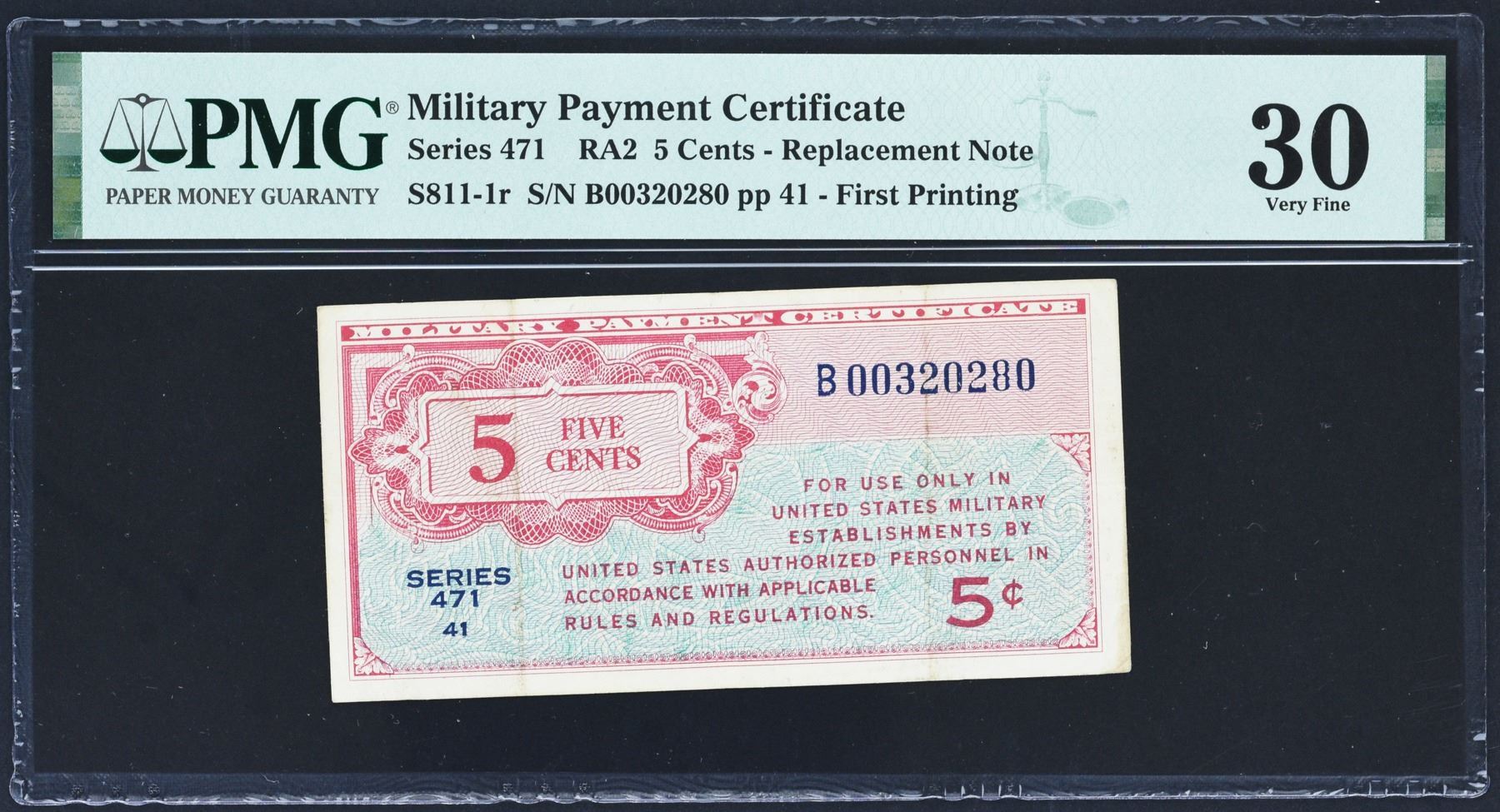 Title: Series 471 5¢ First Printing Replacement PMG Very Fine 30