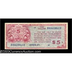 <TABLE cellSpacing=0 cellPadding=0 width="100%" bgColor=#000000 border=0><TBODY> <TR><TD width="100%"><TABLE cellSpacing=1 cellPadding=3 width="100%" border=0><TBODY><TR><TD width="100%" bgColor=#79735c><FONT face=arial color=#ffffff size=3><B>Description</B> </FONT></TD></TR><TR><TD width="100%" bgColor=#ffffff><FONT face=arial size=2><B>Series 471 $5 Very Fine.</B></I> Bright colors, excellent margins, and not so much as a stray mark on this key note from the MPC series. It is strictly original with a bare minimum of soil. (1,250-up ) </FONT></TD></TR></TBODY></TABLE></TD></TR></TBODY></TABLE><BR><TABLE cellSpacing=0 cellPadding=0 width="100%" bgColor=#000000 border=0><TBODY><TR> Important notice: Heritage usually auctions material at the rate of 200-250 lots per hour. On some occasions eBay Live bid software or the Internet may not be able to keep up with the pace of the auction. We recommend placing a realistic absentee bid now as insurance to avoid disappointment. Occasionally the auctioneer may eliminate or reject an eBay Live bid, and the auctioneer may also reopen a lot after the close of the eBay live bidding (usually because we missed an audience bid), and may reject your bid even if it shows you as the winning bidder. By bidding via eBay Live, you agree that Heritage may award the lot to another bidder at its sole discretion under the circumstances described above or any other reasonable circumstances. Also please note that all Heritage lots purchased through eBay Live carry a 20% Buyer's Premium. Please make sure you read the Terms and Conditions before you bid.</TR></TBODY></TABLE>