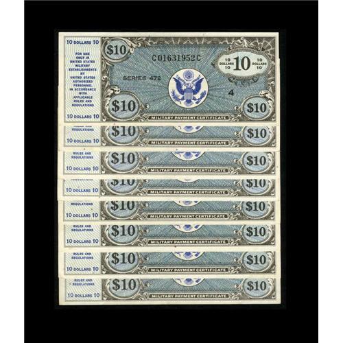 Series 472 $10 Choice 8 notes. XF-AU Series 472 $10 Eight Examples. Choice Extremely Fine-About New.