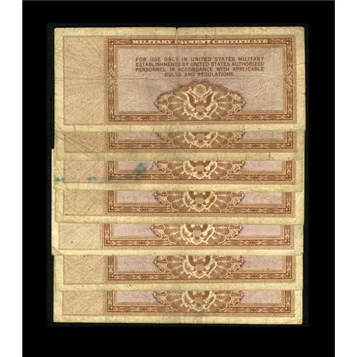 <B>Series 472 $5 Seven Examples. Very Good.</B></I> Seven examples of this scarce note, all right around the same grade. One of the notes has a small hole, one has a tear and paper-clip rust, and three have some stray marks or stains.
