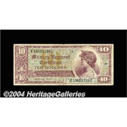 Series 521 $10 MPC Replacement Very Fine. A nice example of this scarce note. <BR><BR><B>Important notice:</B> Heritage usually auctions material at the rate of 200-250 lots per hour. On some occasions eBay Live bid software or the Internet may not be able to keep up with the pace of the auction. We recommend placing a realistic absentee bid now as insurance to avoid disappointment. Occasionally the auctioneer may eliminate or reject an eBay Live bid, and the auctioneer may also reopen a lot after the close of the eBay live bidding (usually because we missed an audience bid), and may reject your bid even if it shows you as the winning bidder. By bidding via eBay Live, you agree that Heritage may award the lot to another bidder at its sole discretion under the circumstances described above or any other reasonable circumstances. Since eBay bids are not shown to us until we open the lot on the floor, we treat those bids just like floor bids. In most cases the floor responds before the eBay bid is presented to us, due to Internet lag time, so for consistency we have made it a policy that floor bids are always considered first over tie eBay live bids. Also please note that all Heritage lots purchased through eBay Live carry a 20% Buyer's Premium. Please make sure you read the Terms and Conditions before you bid. <BR><BR><B>IMPORTANT ANNOUNCEMENT ABOUT RESERVES:</B> Heritage now divulges all reserves on its web site 7 days before every auction. If you want to know whether the reserve on this lot has been met, and if not, what the reserve amount is, please visit this lot page on the HeritageCoin.com web site, or email: bid@HeritageGalleries.com