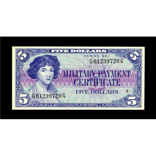 <B>Series 591 $5 Gem New.</B></I> We won't be shy, this is the nicest one of these rare notes we have ever seen. The margins are wide, the inks are dark, and there is not a hint of handling. The note also has near perfect centering and face to back registration. A perusal of leading dealers' price lists does not come up with a note in any grade and it has been a long time since we have had one. Certainly a note for the collector who wants the best and is willing to pay for it.<BR><BR><b>Shipping:</b> Coin/Currency (<a target="_blank" href="http://www.heritageauctions.com/common/shipping.php">view shipping information</a>)