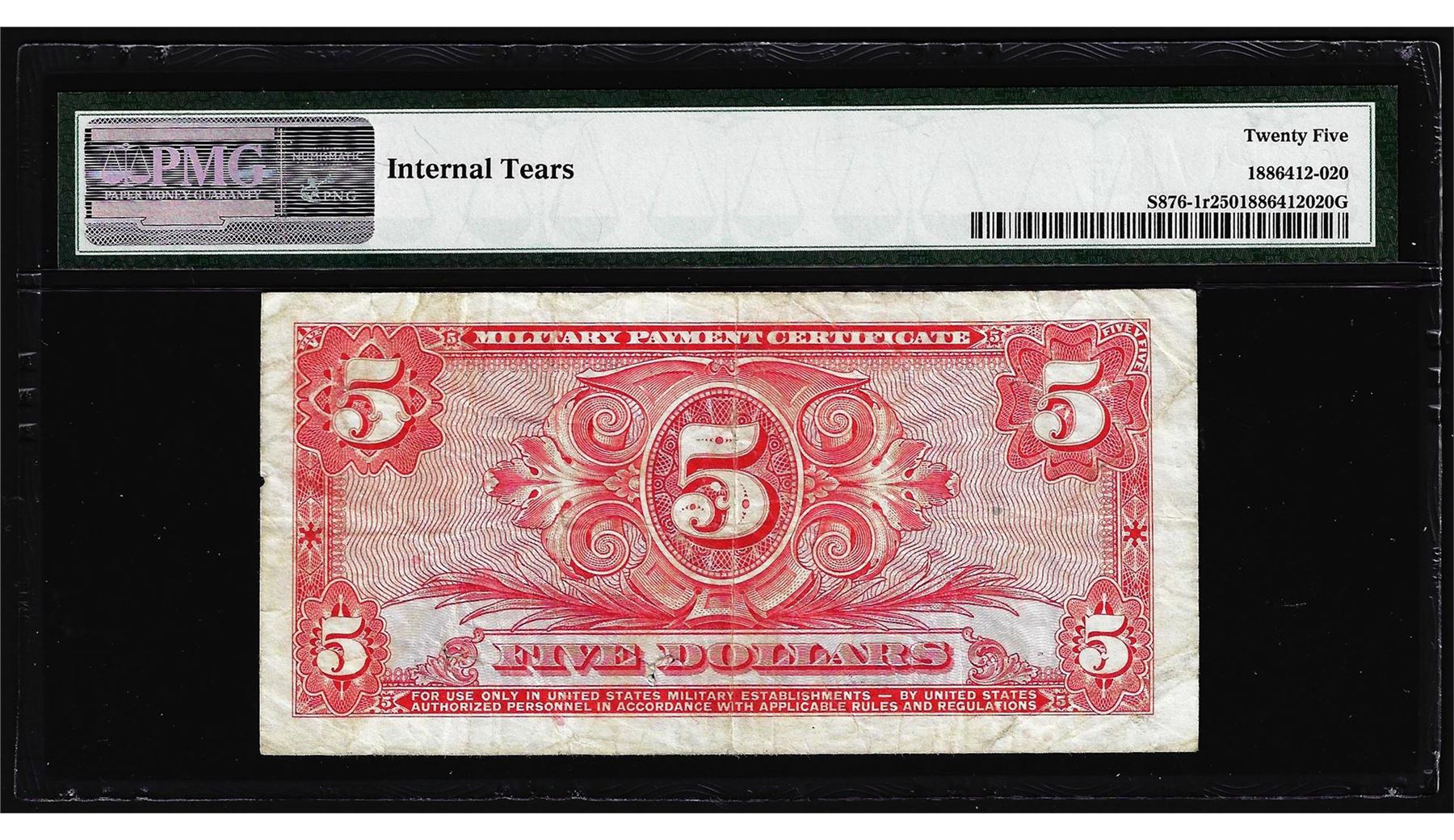 One Series 611 $5 Replacement Military Payment Certificate Note PMG Very Fine 25. PMG Certified.