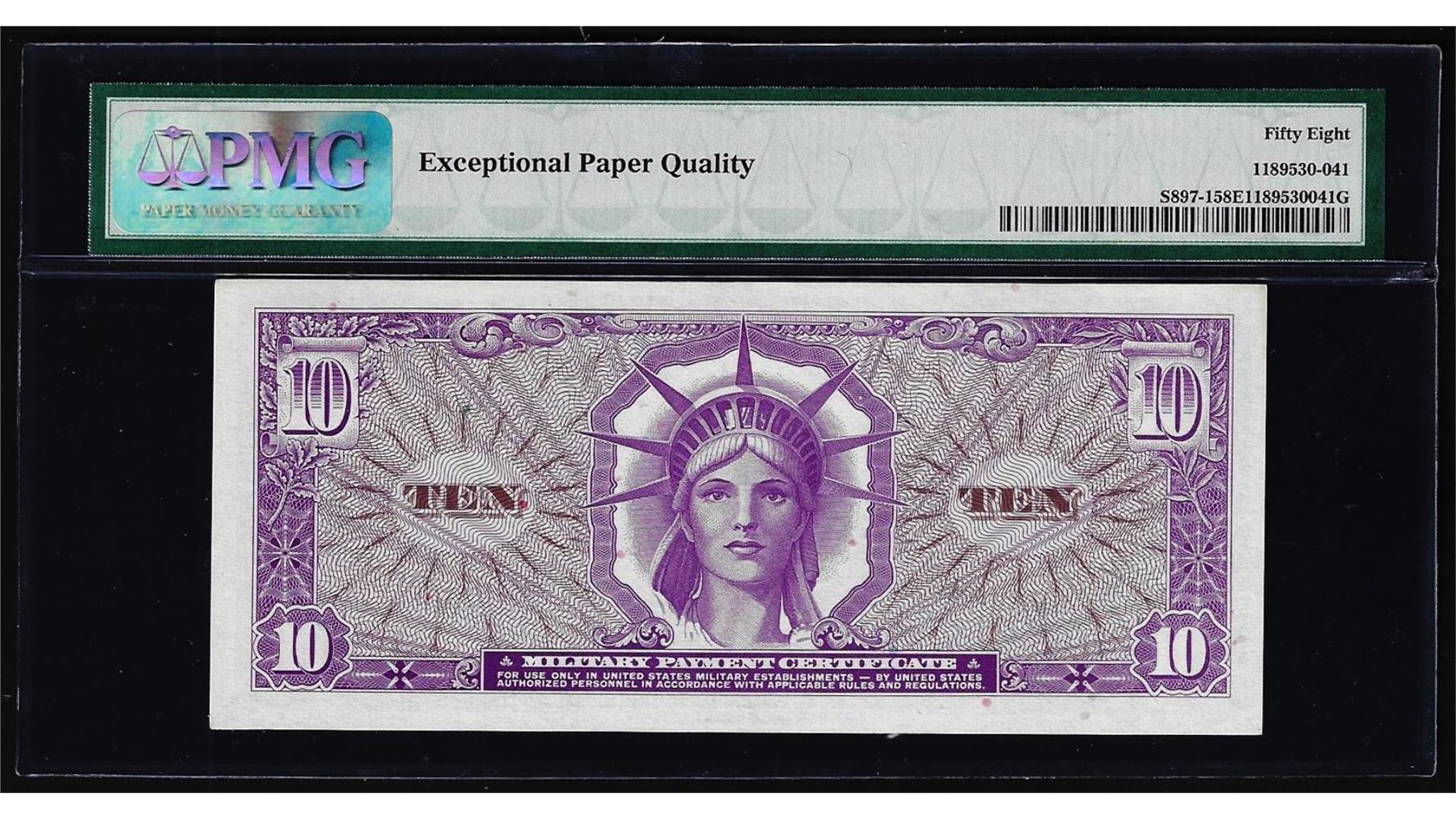 One Series 651 $10 Military Payment Certificate Note PMG Choice About Unc 58EPQ. PMG Certified.