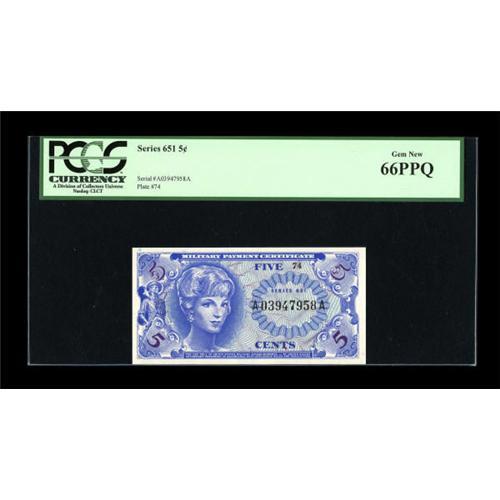 Series 651 5¢ PCGS Gem New 66 PPQ.