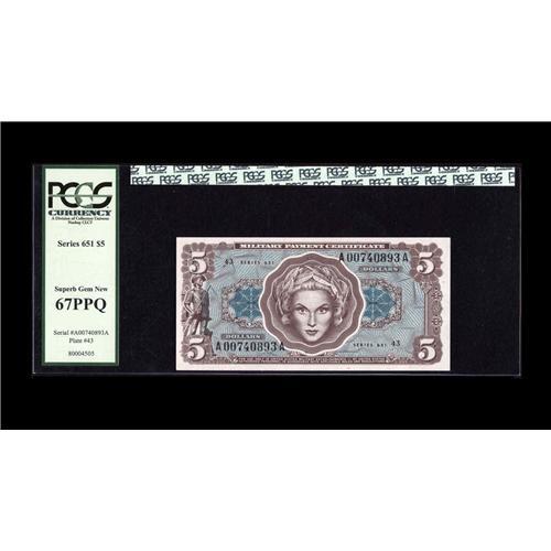Series 651 $5 PCGS Superb Gem New 67 PPQ. Series 651 $5 PCGS Superb Gem New 67 PPQ.