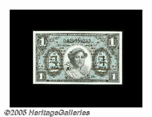 <B>Series 691 $1 Gem New.</B></I>The centering is micrometer perfect and there is deep punch through displayed by the serial numbers of this note which is every bit as fresh as the day it was printed. This Vietnam-era series was never officially issued.