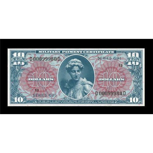 <B>Series 691 $10 Gem New</B></I>. This eye appealing note which hails from position 13 is just a broader upper margin away from superb.<BR><BR><b>Shipping:</b> Coins & Currency (<a target="_blank" href="http://www.heritageauctions.com/common/shipping.php">view shipping information</a>)