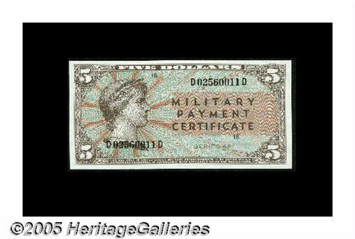 <B>Series 691 $5 Gem New.</B></I> A gorgeous note from this unissued Vietnam-era series. The margins are close to perfect.