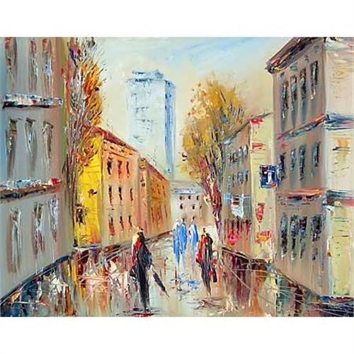 One oil paintings from series "Series 'Moscow Streets'". Artist Timur Veniaminov was born in Dagestan in 1971. He has leaved the Dagestan art school in 1990. And he graduated Institute of Arts named by Syurikov in Moscow. Then artist went and worked in France, Germany, Austria with 1990 on 1993. Now Timur lives and works in Russia. Timur is passionate admirer impressionism style, but nevertheless the artist chosen himself way in creativity. His style is easy, exciting, cheerful. Heroes of his paintings - people of city or fairyland and fantastic personages. The paintings of Timur Veniaminov leaves joyful feeling with you. Participated in exhibitions: 1991 - Gratz. Austria 1992, Magdeburg. Germany 1994, Moscow. Russia 1994, Turkey - auction. 1997, Saint-Petersburg. Russia 1998, Dagestan. 2000, 2005 Moscow. Russia. 2001, Canada 2003, France 2004 - Japan