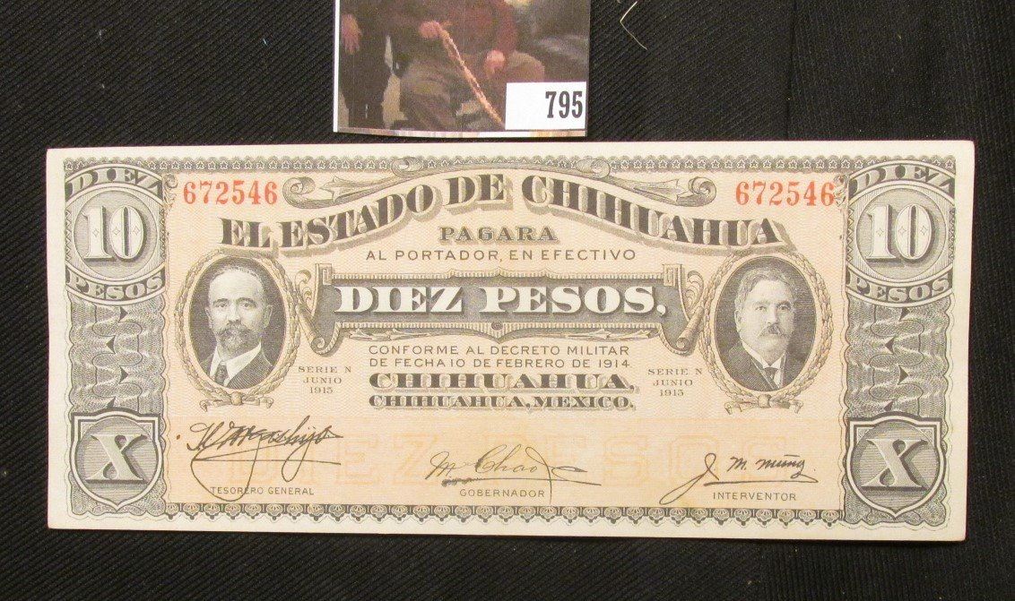 Series N June 1915 "El Estado De Chihuahua, Mexico" Ten Peso Banknote, CU.