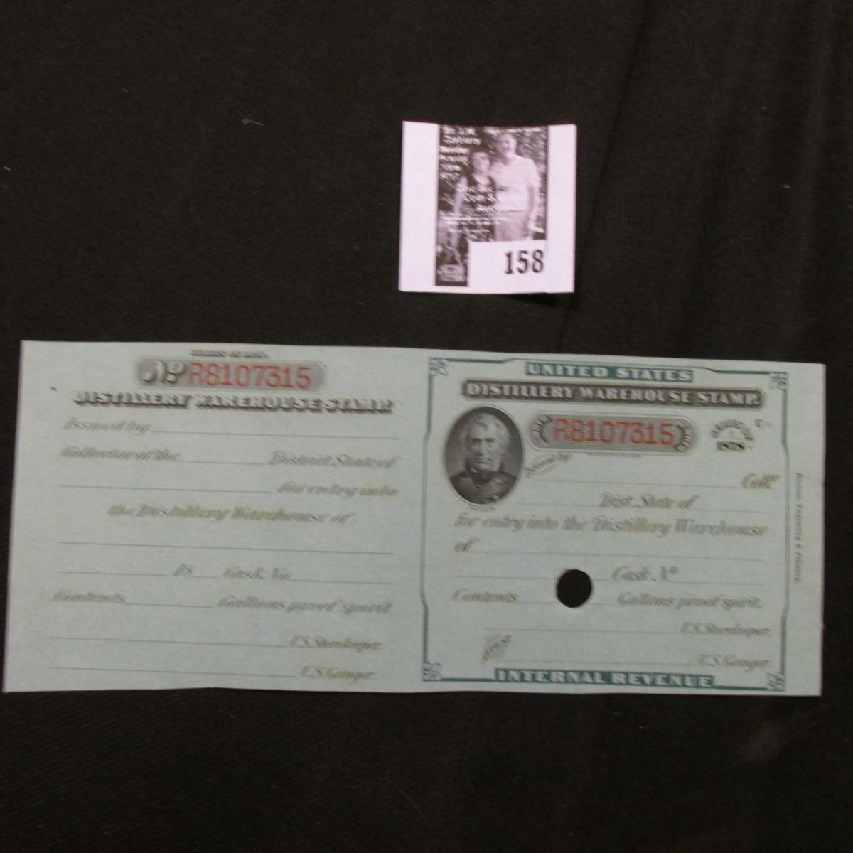 Series of 1878 "Distillery Warehouse Stamp", hole cancelled.