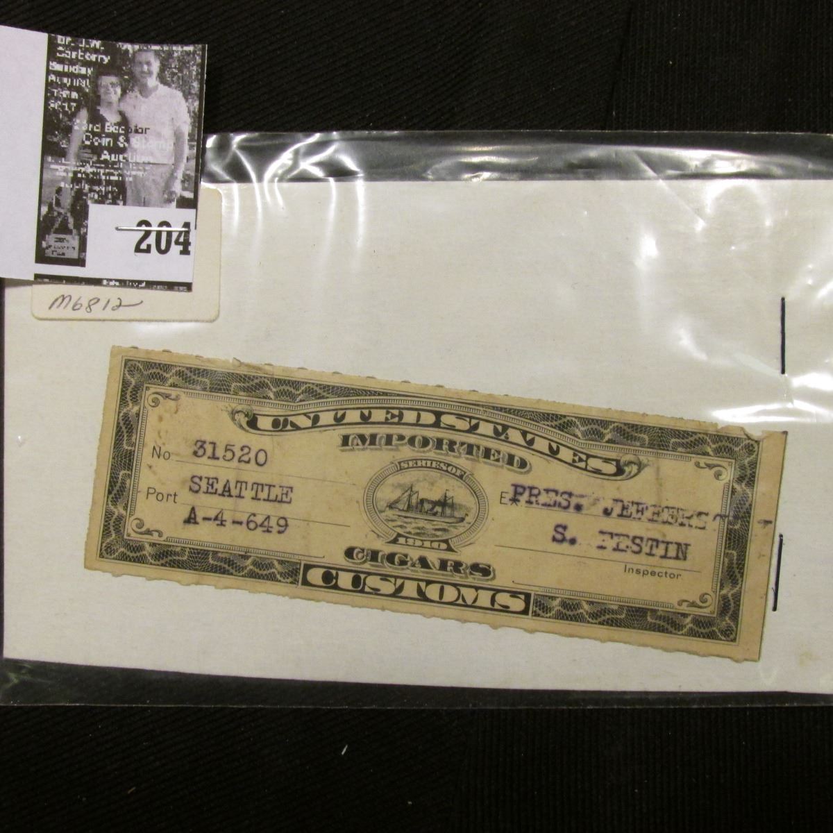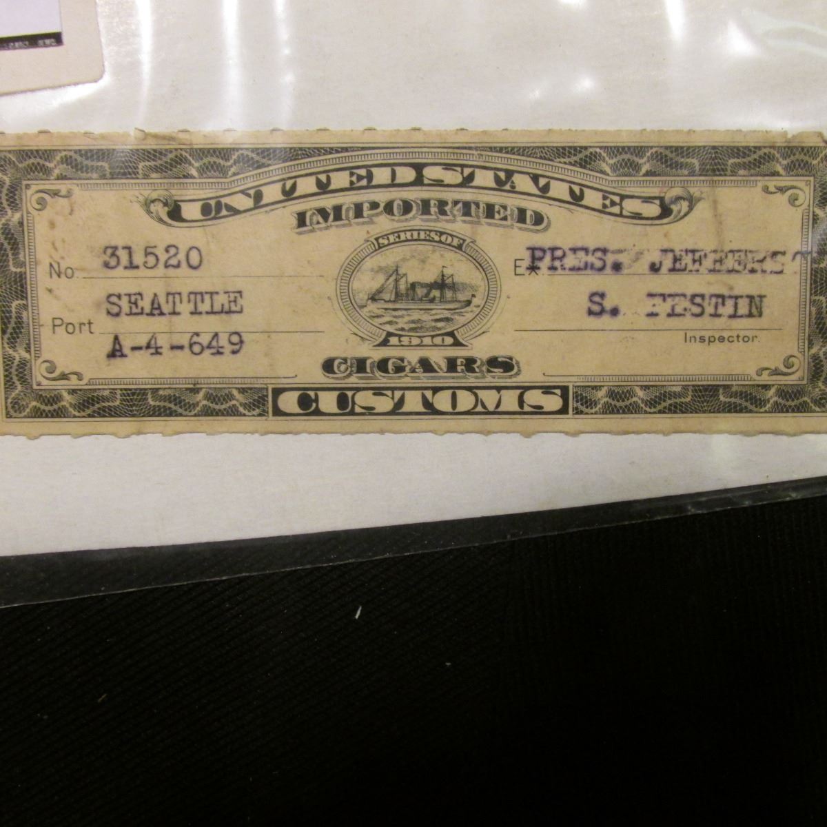 Series of 1910 United States Imported Cigars Customs Stamp, Port Seattle.