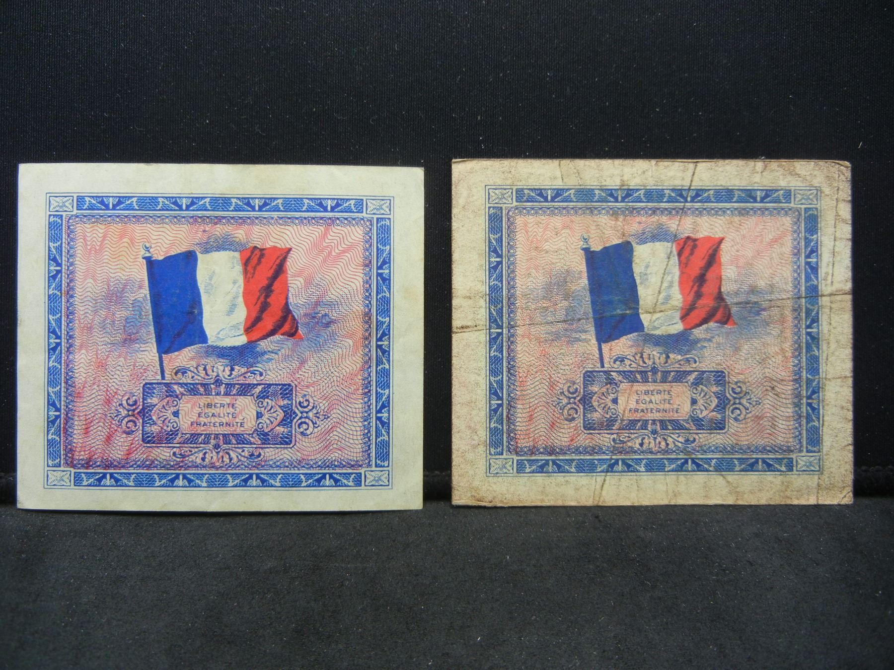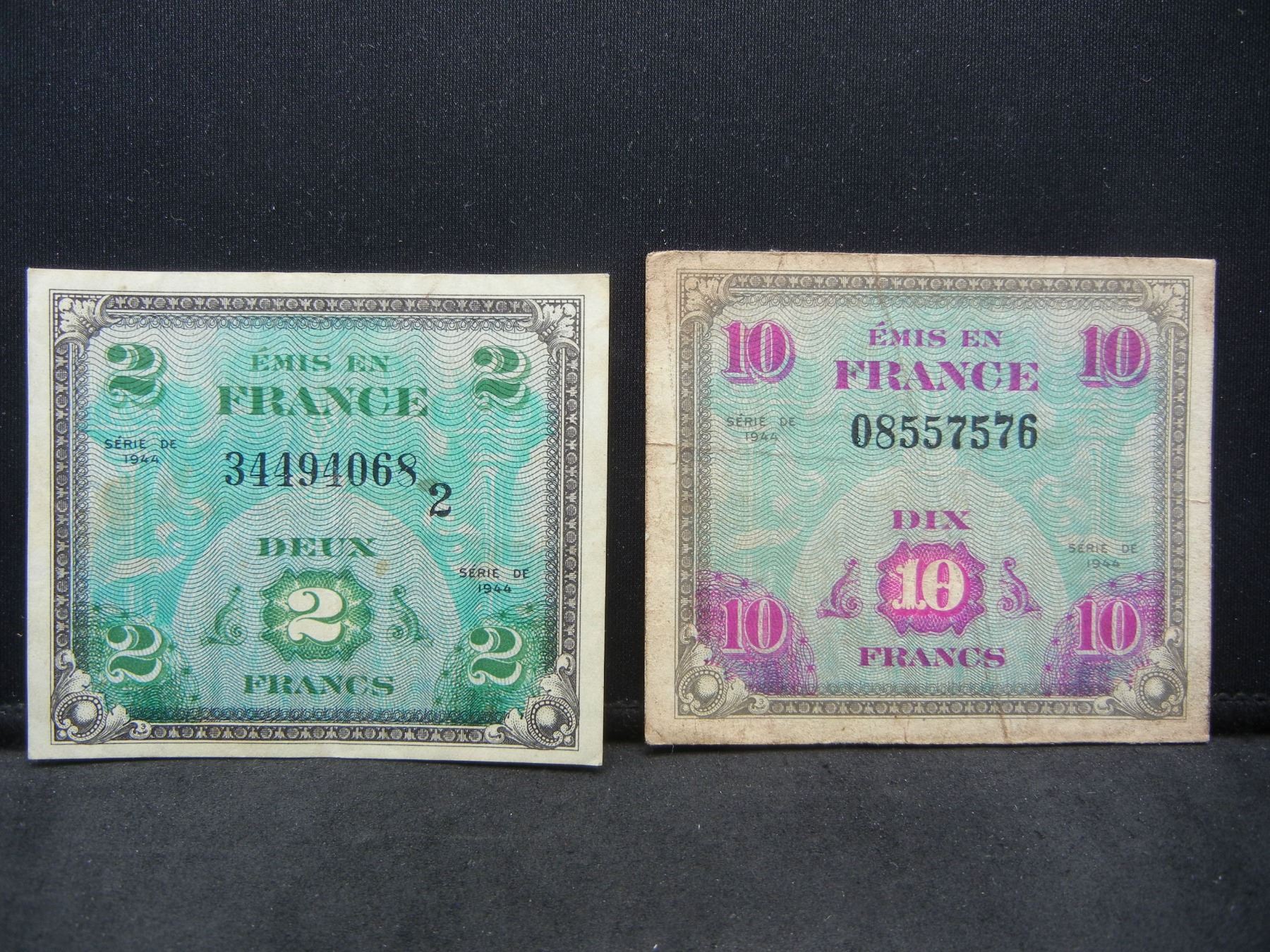 Series of 1944 French 2 & 10 Francs Military Currency.