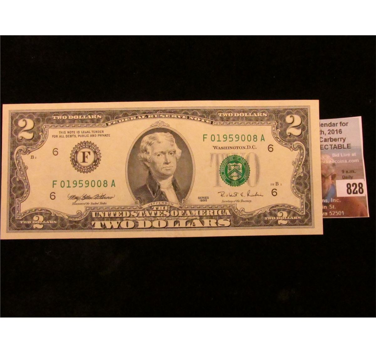 Series of 1995 $2 Federal Reserve Note "F" Atlanta, Georgia. CU.