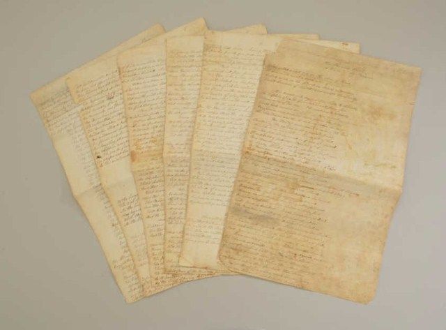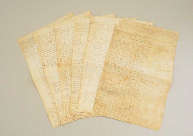 Series of poems entitled "The Peculiar Profile" signed Minnie. Attributed to Catherine Stratton Ladd circa about Civil War era. Six (6) sheets carefully penned on each side measuring 16-1/4”x10”. Stained and aged but legible and very cleanable. Catherine Ladd wrote under many pseudo names including Minnie Mayflower. She opened a boarding school in South Carolina named Winnsboro Female Institute. She was devoted to theconfederate cause and helped design their flag. She was president of the Soldiers Aid Society and sewed clothing with girls to aid the cause. She sent her German tableware to be melted into bullets and gave her telescope to officers. Great reading and historic. Est.; $400-$800