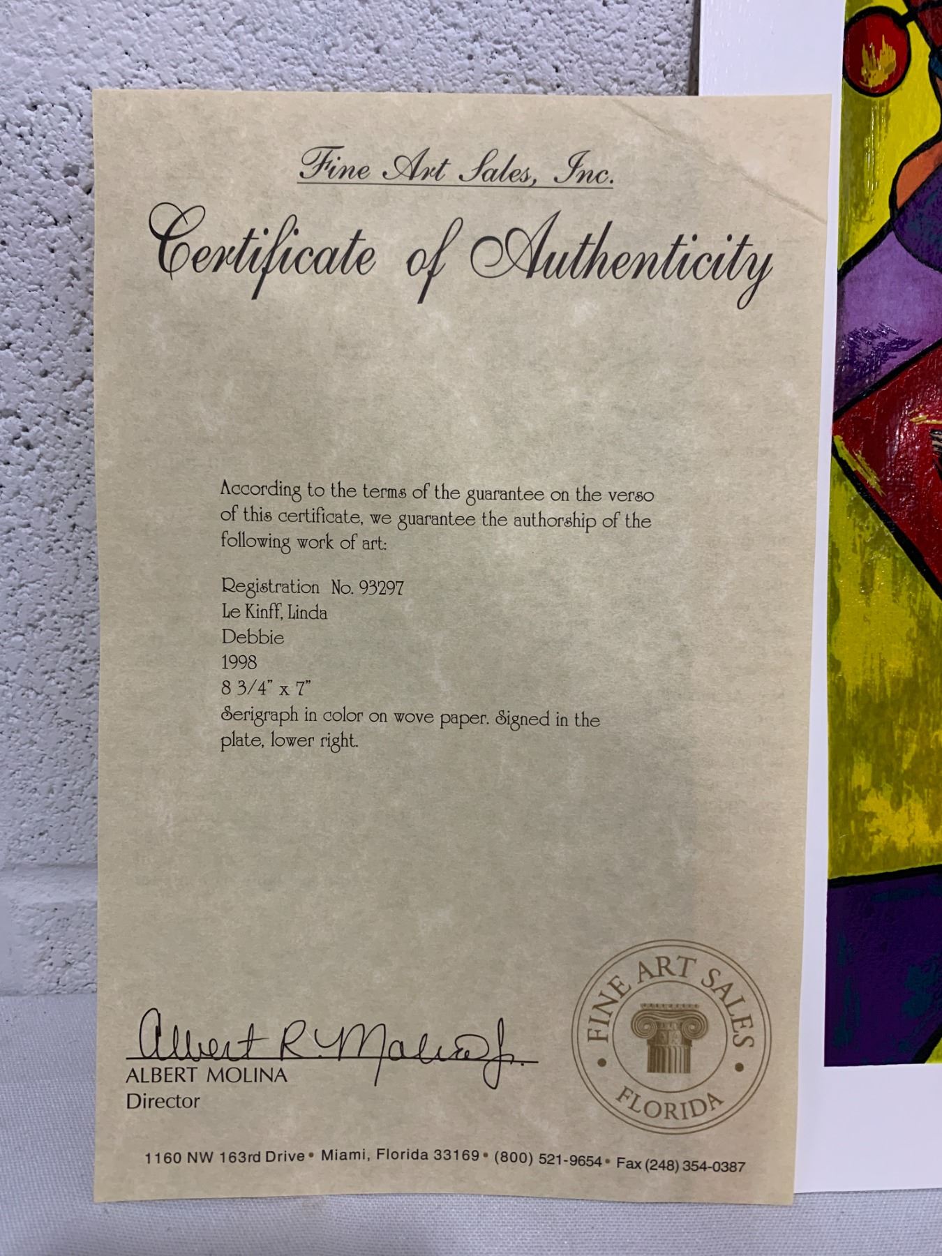 8 3/4in long x 7in wide, Signed by, Le Kniff Linda