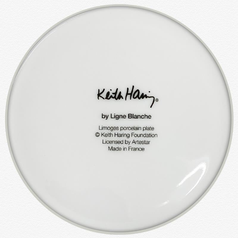 "Serpent" is a Limoges porcelain plate bearing the plate signature inverso of Keith Haring (1958-1990). This plate is custom framed and floated on linen. Measures approx. 13.5" x 13.5" (frame), 8.5" (plate diameter).