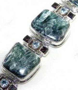 Silver & Serphanite, Garnet and Blue Topaz Bracelet. Allow 6 to 8 weeks for delivery.