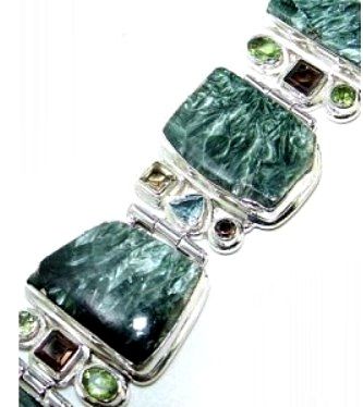 Silver & Serphinite, Blue Topaz & Peridot Bracelet. Items are hand made as ordered so please allow 6 to 8 weeks for delivery.