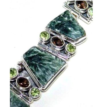 Silver & Serphinite, Garnet & Peridot Bracelet. Allow 6 to 8 weeks for delivery.