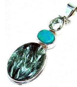 Silver and Serphinite, Turquoise & Green Amethyst Pendant. Allow 6 to 8 weeks for delivery.