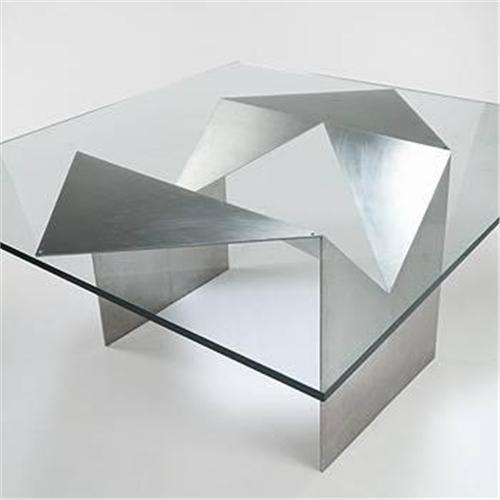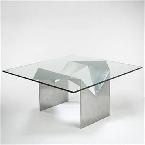Serra di Migni<BR>dining table<BR>Belgium, 1972<BR>stainless steel, glass<BR>61"w x 57"d x 29.5"h<BR>A well-known Belgian architect, de Migni designed very little furniture.<BR><BR><BR><BR><BR><BR>