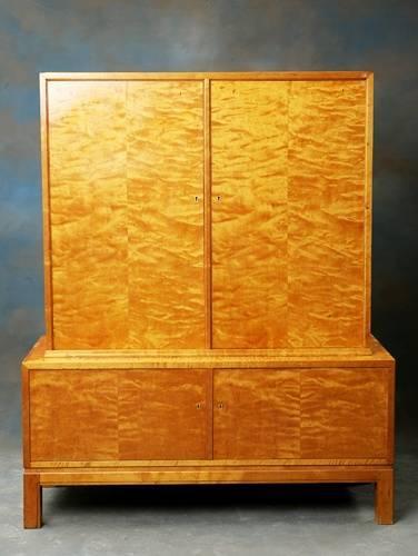 Serveringsskåp björk 1920-30-tal H 158 L 129 D 49 skada på ett bakben