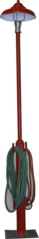 1940's Service Station Single Island Light w/ Water & Air Hoses, Porcelain Shade - 10' 6" Tall