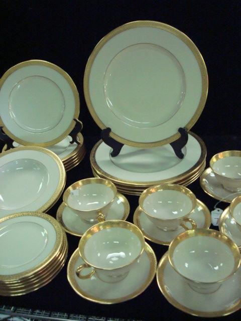 Service for 6 LENOX Stanford Dinnerware:32 Pieces of Creamware with Elegant Gold Band.(200-400)