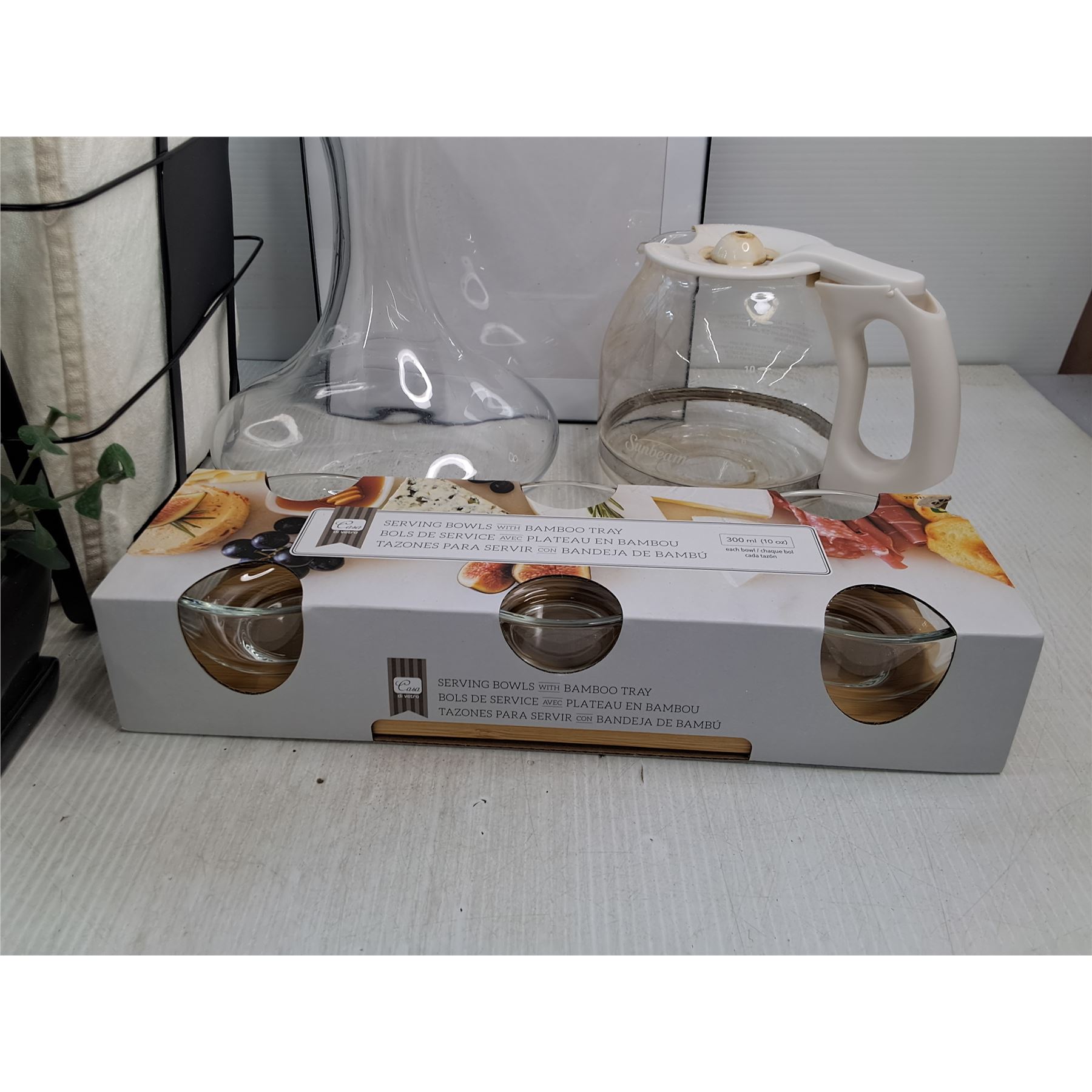 Serving Bowls with Bamboo Tray, Coffee Pitcher, Vase, Artificial Plants, Photo Frame, Misc