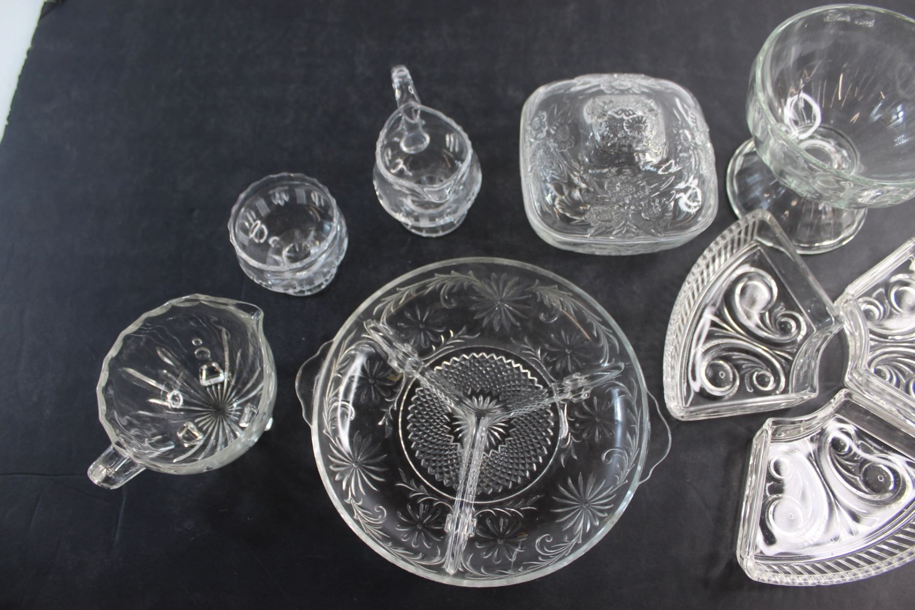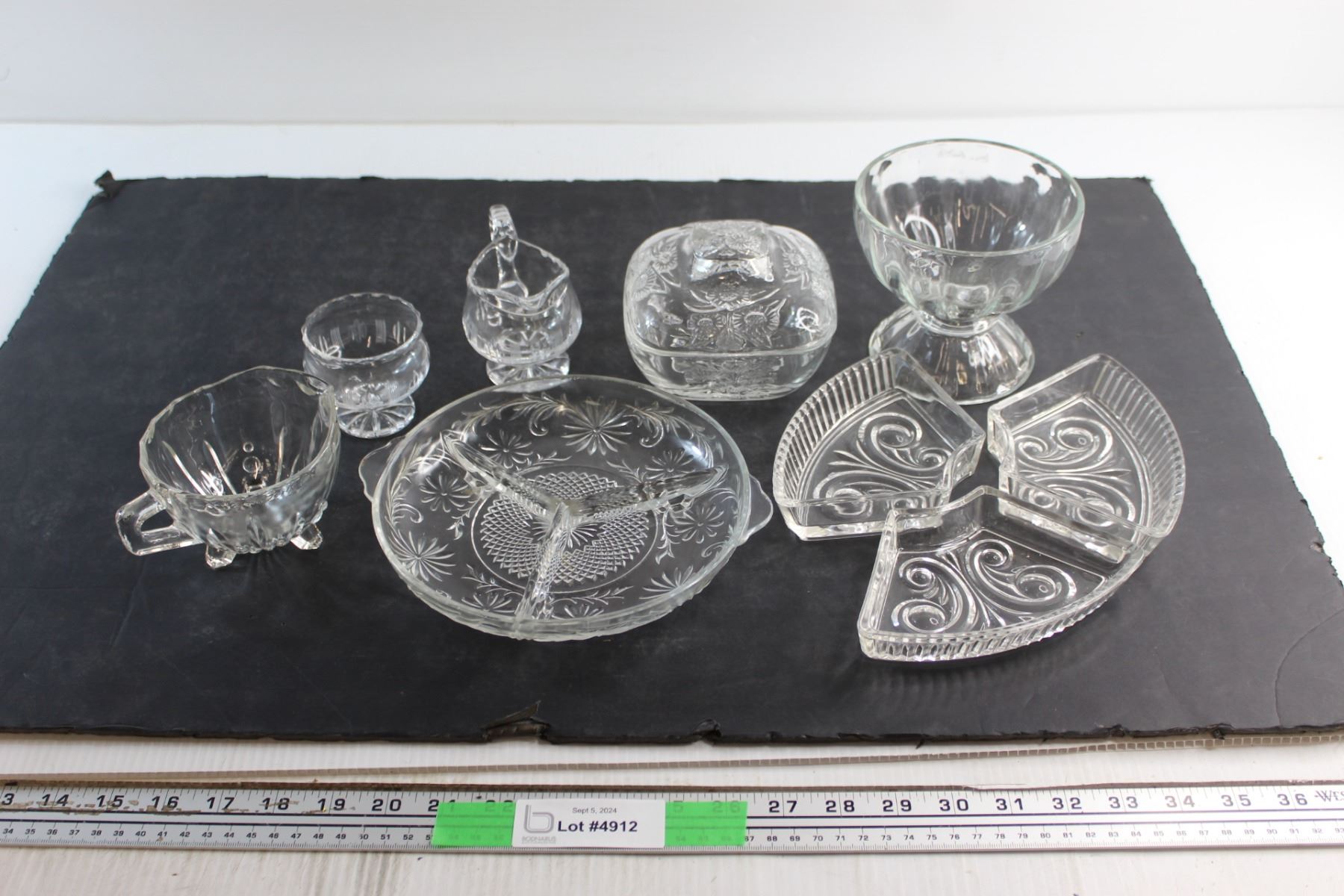 Serving Glass Tray, Creamer, Candy Bowl and Assorted Glassware
