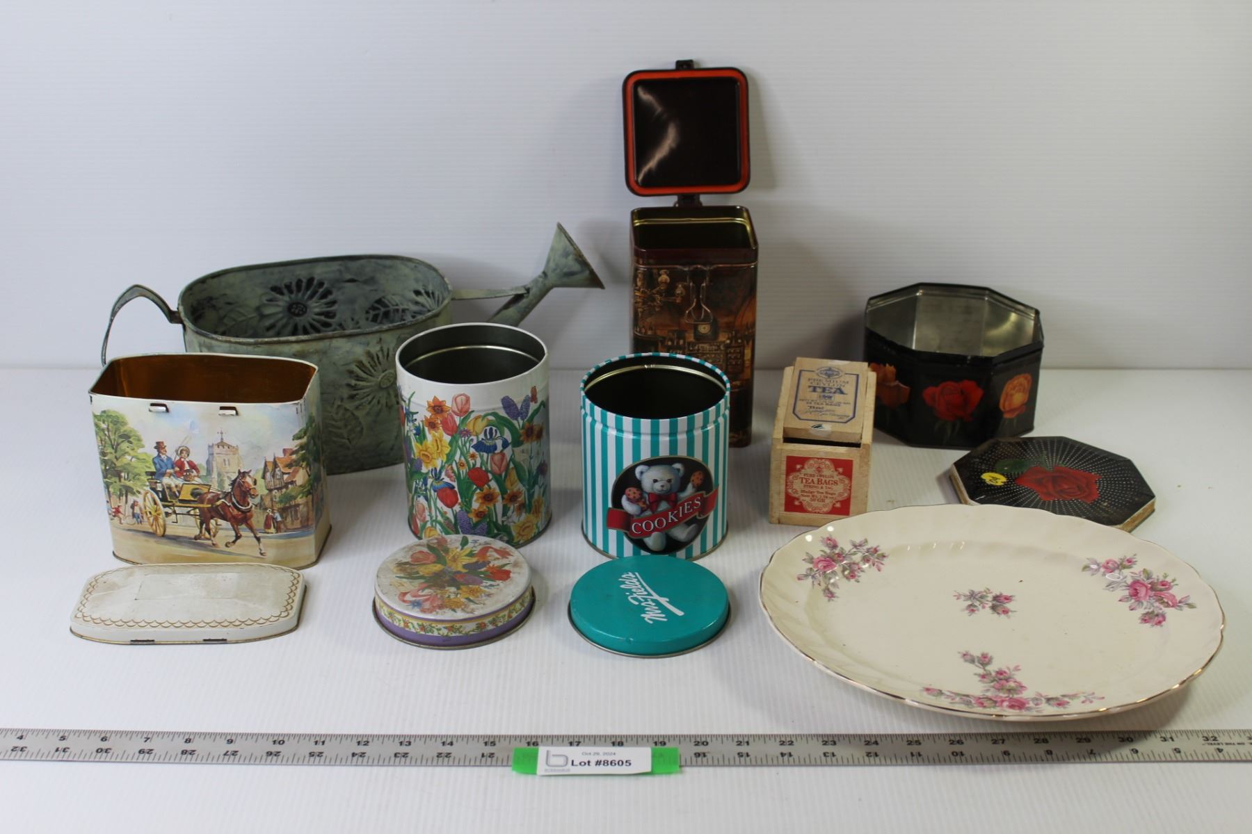 Serving Platter, Tins (Mrs. Fields, Cafe Grecco etc.), Metal Watering Can