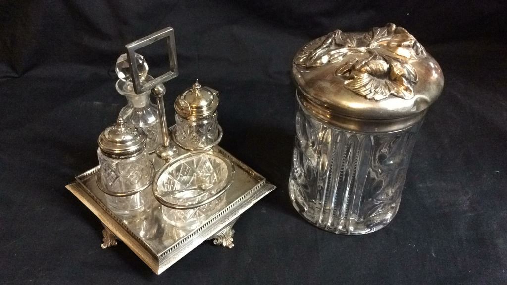 Serving Set and Silver Plate Top Jar