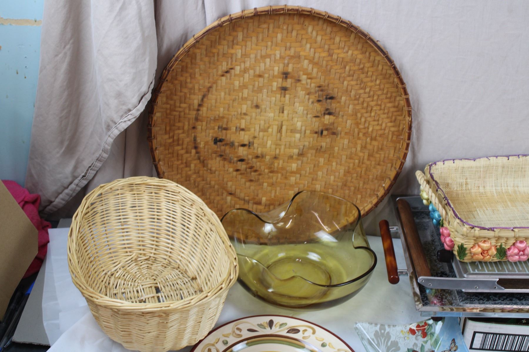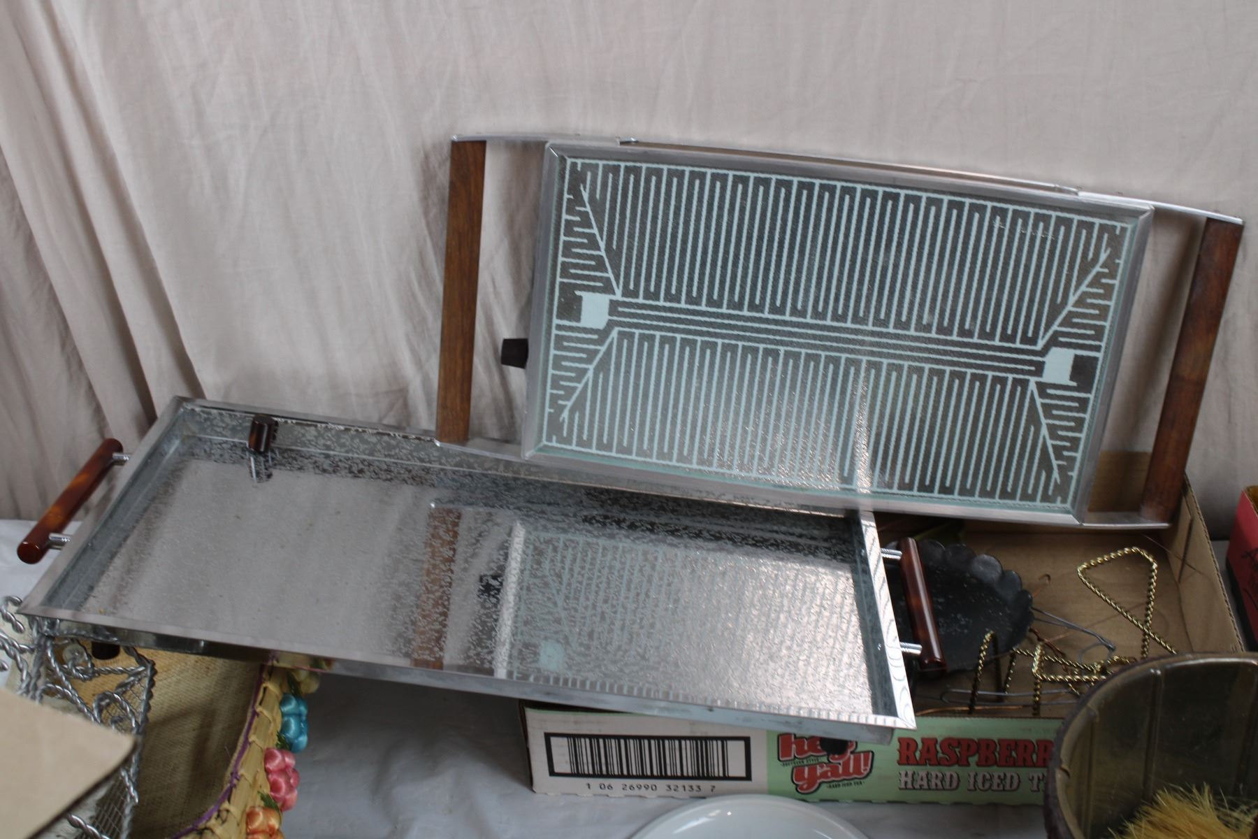 Serving Tray + Food Warmer (missing power cord), misc plates, cutlery, and various household items