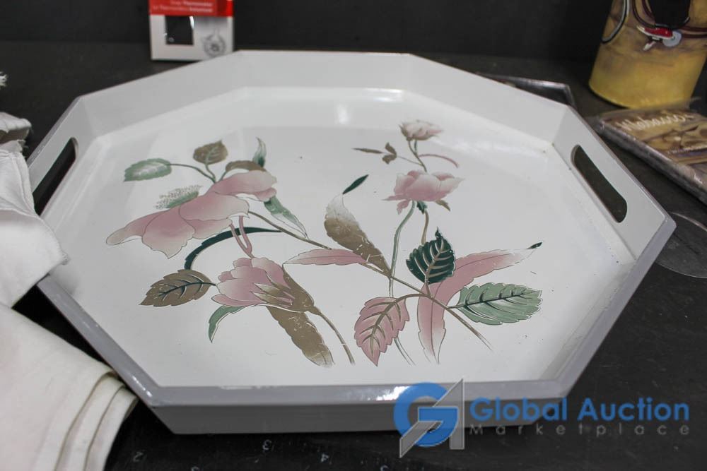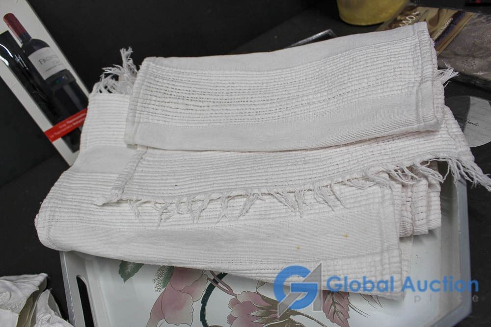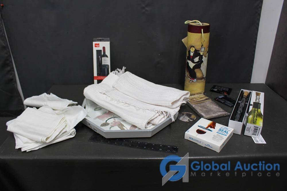 Serving Tray, Place Mats, Cloth Napkins, and Wine Accessories