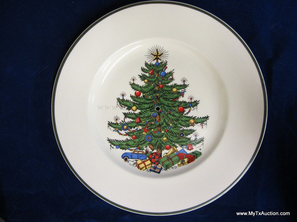 Cuthberton 10" serving plate is part of a 2 tiered set and has the hole in the middle of the plate for the post and handle. This plate has the narrow darker green band NOTE: slight chipping around hole on the bottom of plate (see images for details)