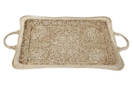 Serving Tray - Sterling Silver Hand Made Heavily 25.72 Oz (800 Grams) Approximate "Timeless Treasure" by Shakuntalam Silvercraft.