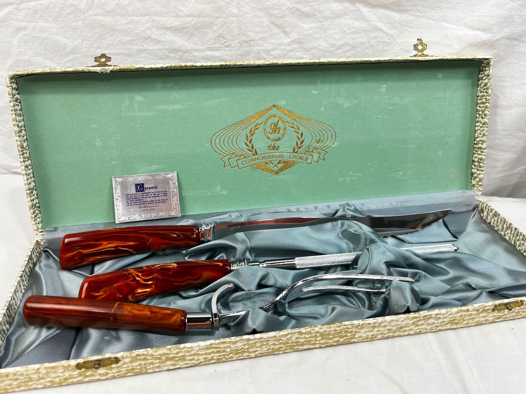 6pc stainless steel cheese knife set, 4pc Rogers silverplate spoons, 6pc stainless steel steak knife set, 3pc connoisseurs choice set
