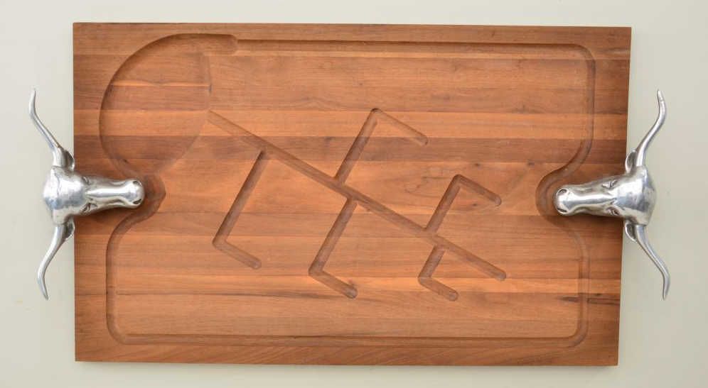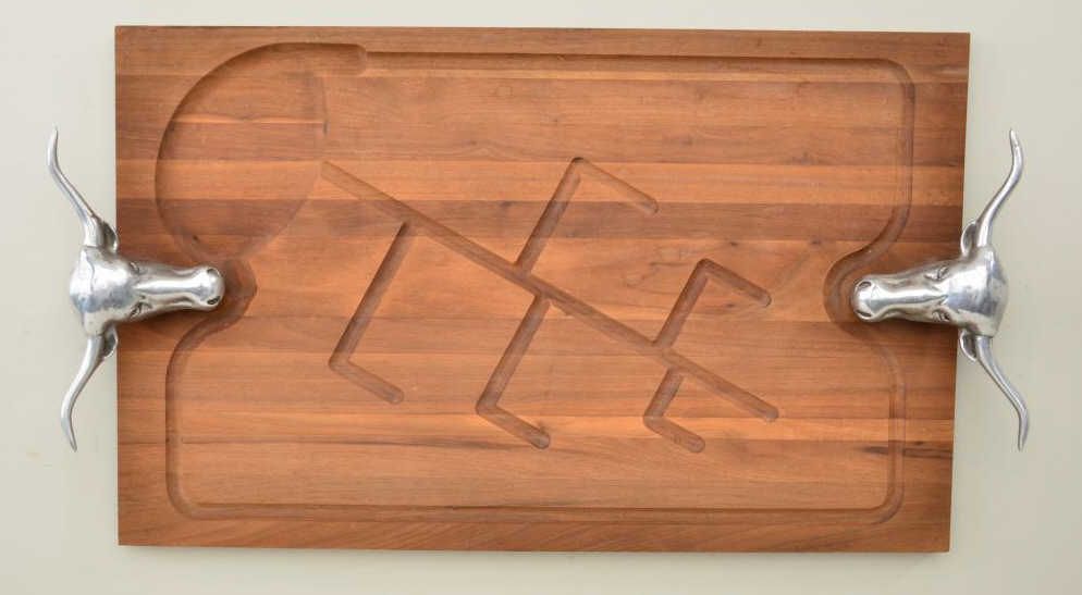 Serving tray with cast metal bull handles. Signed Bruce Fax Design. Est. $