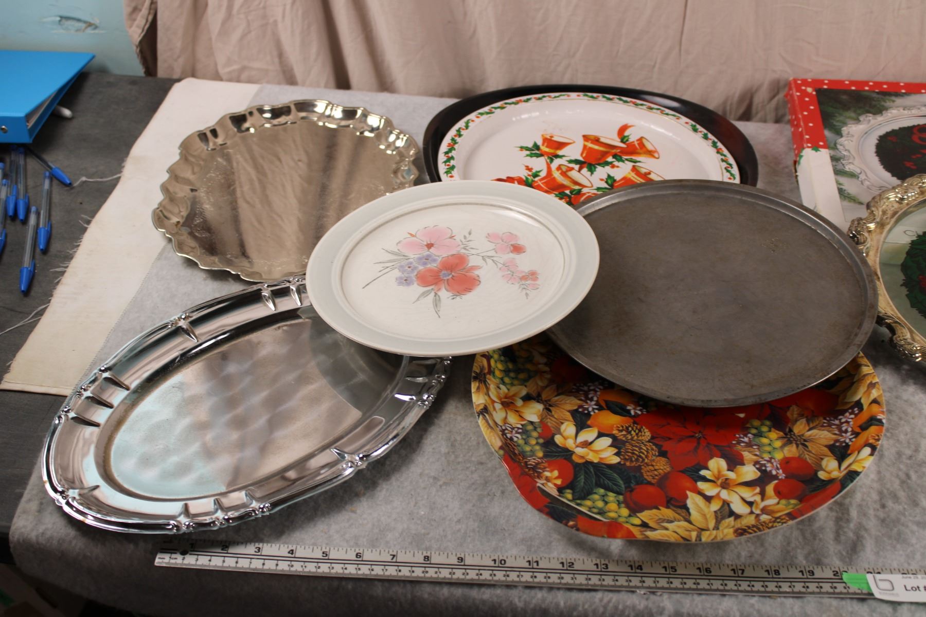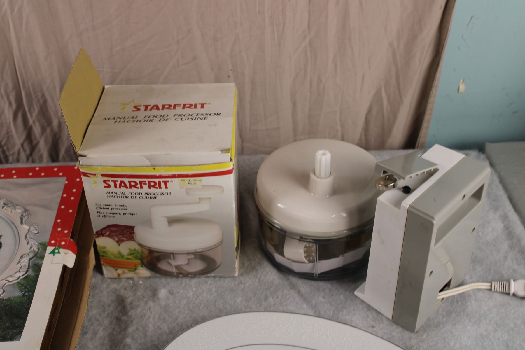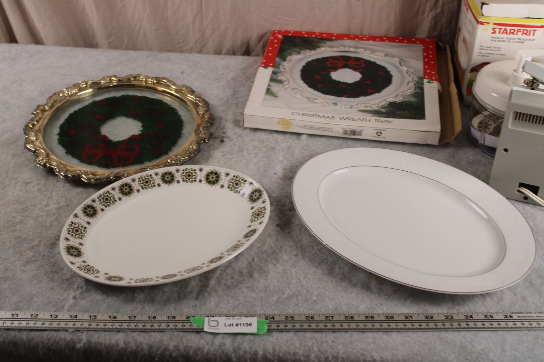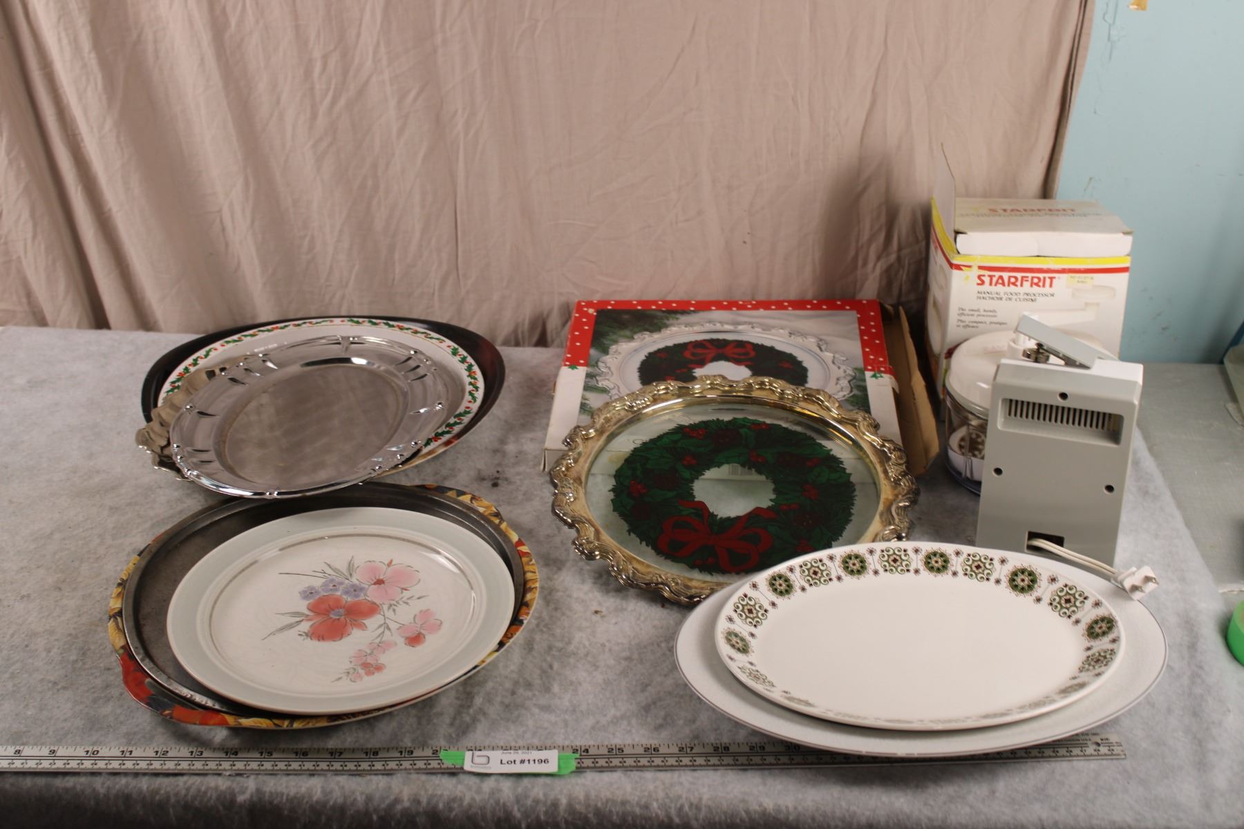 Serving trays (Some seasonal) + food processor and can opener