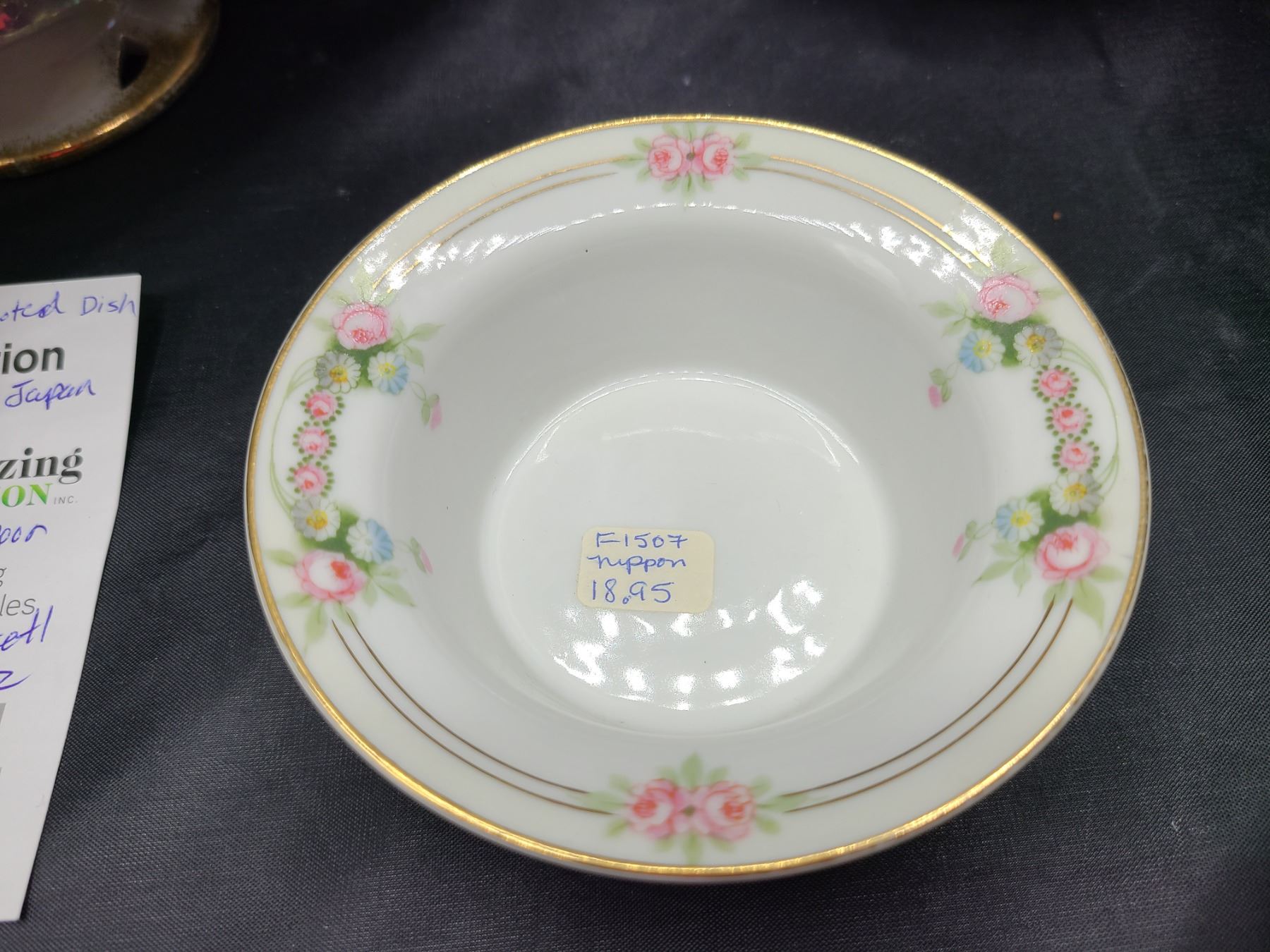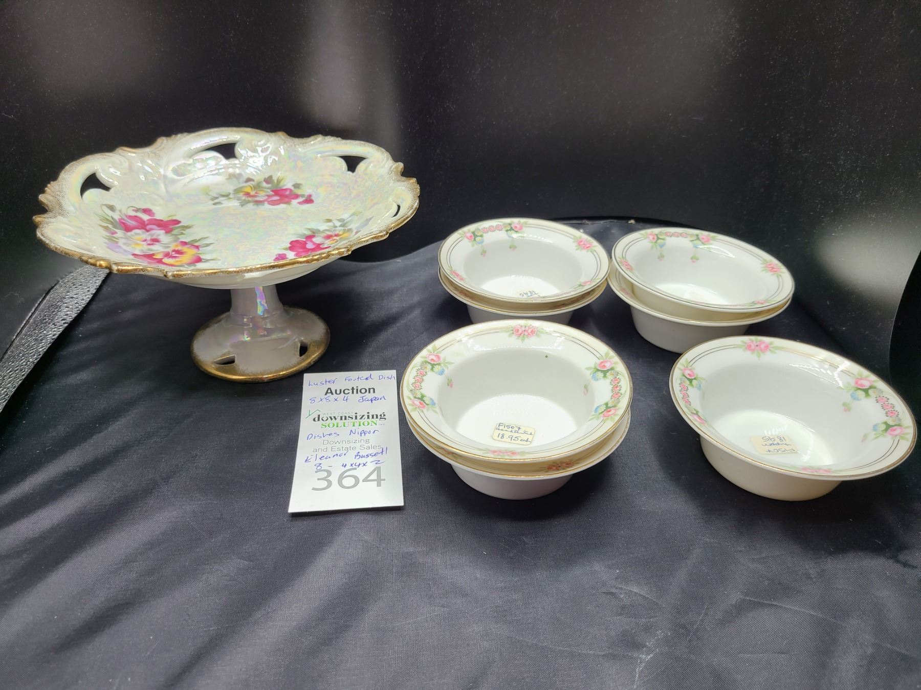 Lusterware footed dish 8x8x4 Japan, 7 mini bowls Eleanor Bassett, Noritake 4x4x2 Nippon Bring packing materials and pickup at 10 am