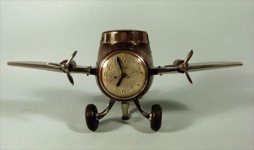 Sessions Airplane Clock. Some loss of chrome on wings otherwise very good working condition. 20 1/2 X 8 1/2 inches.